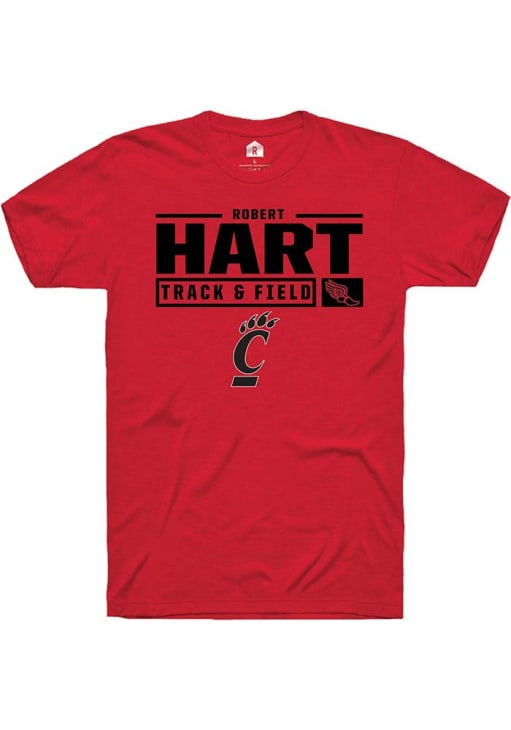 Robert Hart Red Cincinnati Bearcats NIL Stacked Box Short Sleeve T Shirt