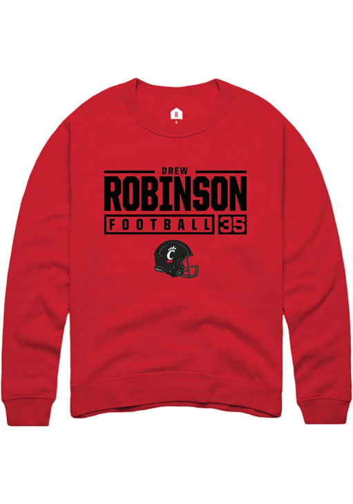 Drew Robinson Rally Mens Red Cincinnati Bearcats NIL Stacked Box Crew Sweatshirt