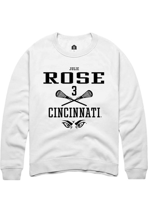 Julie Rose Rally Mens White Cincinnati Bearcats NIL Sport Icon Crew Sweatshirt