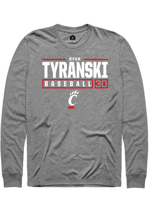 Ryan Tyranski Rally Mens Graphite Cincinnati Bearcats NIL Stacked Box Tee