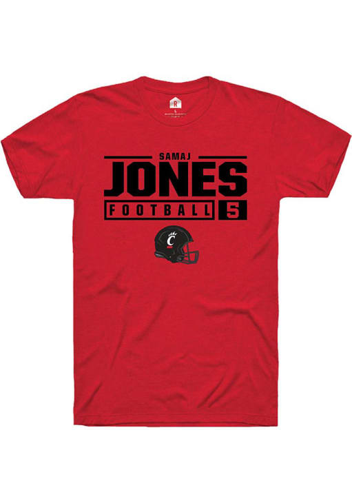 Samaj Jones Red Cincinnati Bearcats NIL Stacked Box Short Sleeve T Shirt