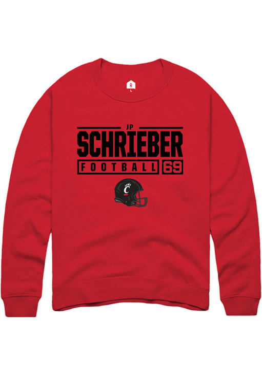 JP Schrieber Rally Mens Red Cincinnati Bearcats Football NIL Stacked Box Crew Sweatshirt