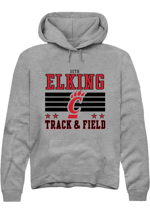 Seth Elking Rally Mens Grey Cincinnati Bearcats NIL Striped Hooded Sweatshirt