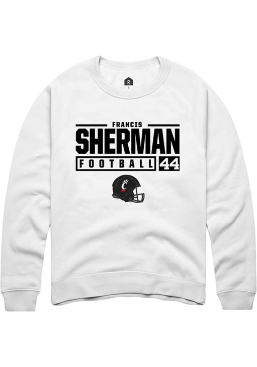 Francis Sherman Rally Mens White Cincinnati Bearcats NIL Stacked Box Crew Sweatshirt