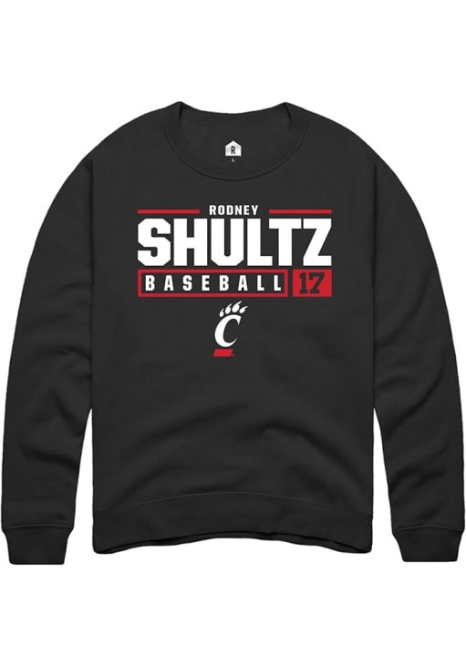 Rodney Shultz Rally Mens Black Cincinnati Bearcats NIL Stacked Box Crew Sweatshirt