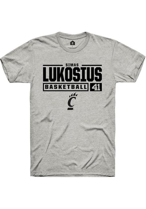 Simas Lukosius Ash Cincinnati Bearcats NIL Stacked Box Short Sleeve T Shirt