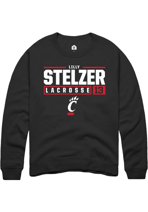 Lilly Stelzer Rally Mens Black Cincinnati Bearcats NIL Stacked Box Crew Sweatshirt