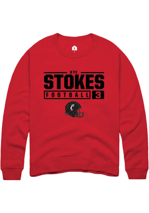 Kye Stokes Rally Mens Red Cincinnati Bearcats NIL Stacked Box Crew Sweatshirt