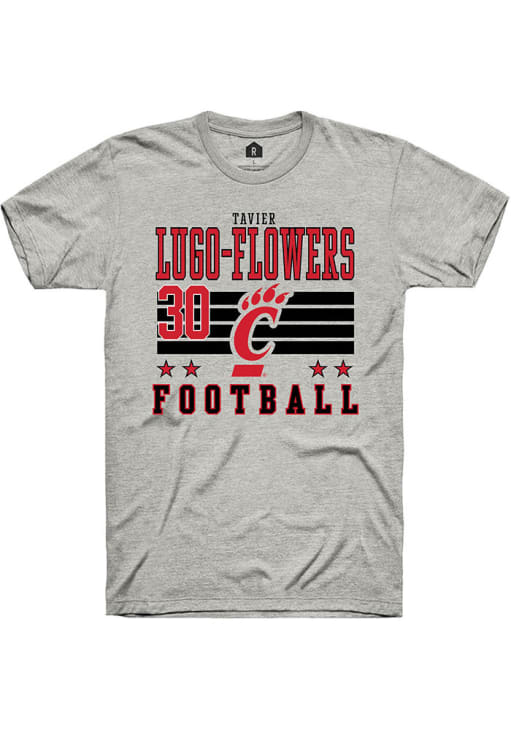 Display your team spirit with this remarkable Cincinnati Bearcats Ash Football NIL Striped Short Sleeve T Shirt! The Cincinnati Short Sleeve Tee showcases a custom graphic with player's name and number that truly sets it apart. Stand out from the crowd and proudly declare your allegiance to the Bearcats with this exceptional Ash Cincinnati T Shirt. Go Bearcats!!
