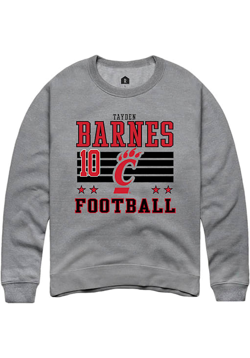 Support your Cincinnati Bearcats and favorite Tayden Barnes in this Cincinnati Bearcats Mens Grey Football NIL Striped Player Crew. This Crew Sweatshirt features a NIL graphic, and is sure to stand out in the stadium. Perfect to wear on game day or any day!