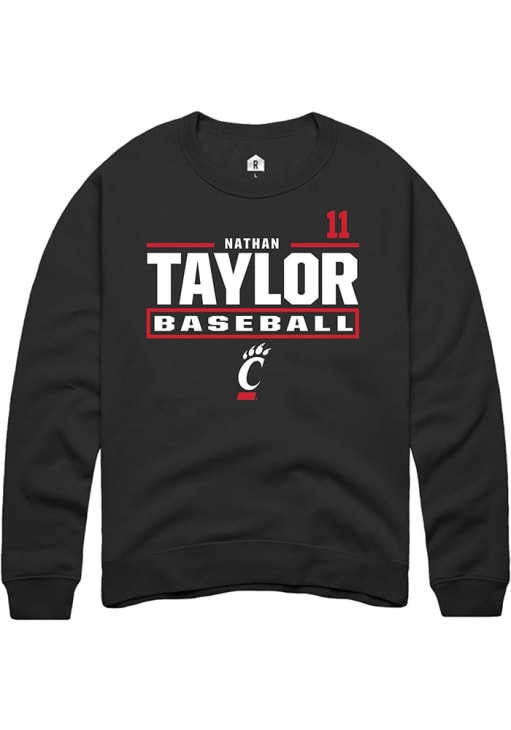 Nathan Taylor Rally Mens Black Cincinnati Bearcats NIL Stacked Box Crew Sweatshirt
