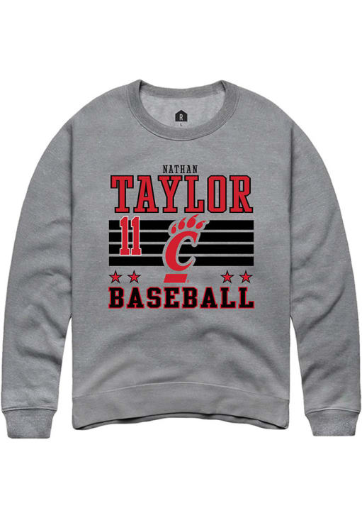 Nathan Taylor Rally Mens Grey Cincinnati Bearcats NIL Striped Crew Sweatshirt