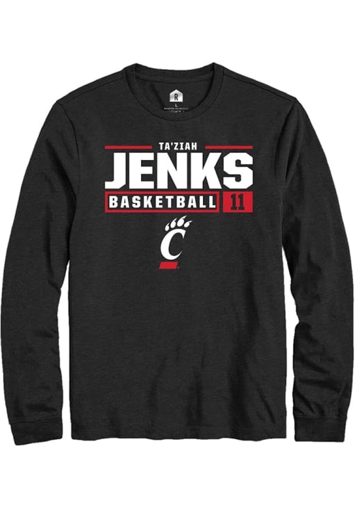 Taziah Jenks Rally Mens Black Cincinnati Bearcats NIL Stacked Box Tee