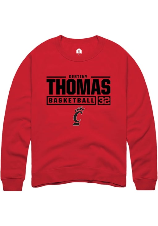 Destiny Thomas Rally Mens Red Cincinnati Bearcats NIL Stacked Box Crew Sweatshirt