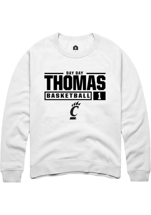 Day Day Thomas Rally Mens White Cincinnati Bearcats NIL Stacked Box Crew Sweatshirt