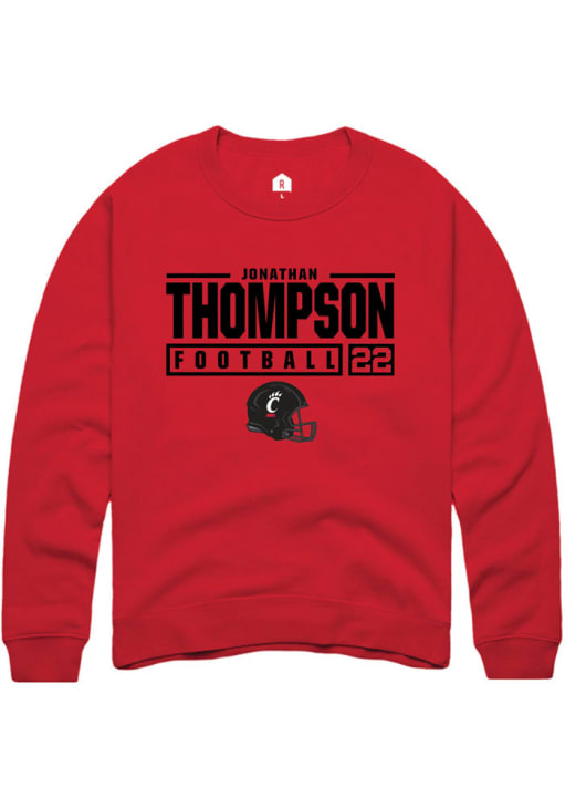 Jonathan Thompson Rally Mens Red Cincinnati Bearcats NIL Stacked Box Crew Sweatshirt