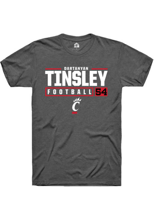 Dartanyan Tinsley Dark Grey Cincinnati Bearcats NIL Stacked Box Short Sleeve T Shirt