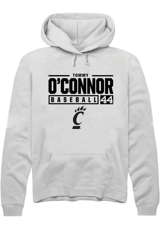 Tommy O'Connor Rally Mens White Cincinnati Bearcats NIL Stacked Box Hooded Sweatshirt