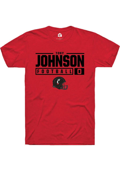 Tony Johnson Red Cincinnati Bearcats NIL Stacked Box Short Sleeve T Shirt