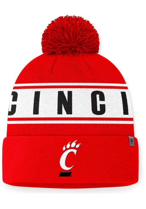 Size Chart for Cincinnati Bearcats Top of the World Slash Cuff Pom Mens Knit Hat - Red