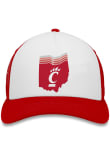 Product Details Product Details State shape with team logo screen printed on center crownTeam name screen sprinted above closure on backTeam color visor, mesh and closureTOW side logoSnap closureCOTTON/POLY MESHCurved BillHigh CrownStructuredWipe clean with cloth or cleaning kitImported Officially Licensed This White Bearcats Adjustable Hat features a front printed team and state logo on a white front trucker design.