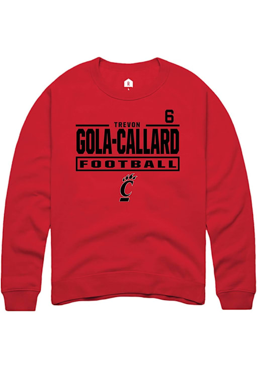 Support your Cincinnati Bearcats and favorite Trevon Gola-Callard in this Cincinnati Bearcats Mens Red Football NIL Stacked Box Player Crew. This Crew Sweatshirt features a NIL graphic, and is sure to stand out in the stadium. Perfect to wear on game day or any day!