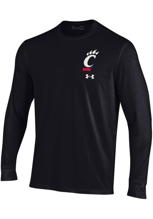 Show your Cincinnati Bearcats spirit in this Cincinnati Black T Shirt! This Cincinnati Primary Logo Long Sleeve T Shirt makes a great layer for cooler nights cheering on the Bearcats. Featuring a screen print of primary team logo on upper left chest, this Cincinnati Bearcats Long Sleeve Tee is an essential addition for every fan. Go Bearcats!!