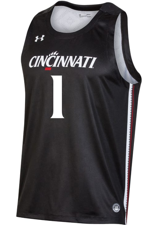 Stand out and showcase your unwavering Cincinnati pride with confidence in this striking Cincinnati Bearcats Mens Black Replica Jersey! Make a statement on gameday with this eye-catching Cincinnati Bearcats Basketball Jersey, which features a combination sublimation and print application of "Cincinnati" above team number 1.