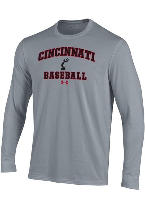 Show your Cincinnati Bearcats spirit in this Cincinnati Grey T Shirt! This Cincinnati Baseball Performance Long Sleeve T Shirt makes a great layer for cooler nights cheering on the Bearcats. Featuring a screen print graphics, this Cincinnati Bearcats Long Sleeve Tee is an essential addition for every fan. Go Bearcats!!