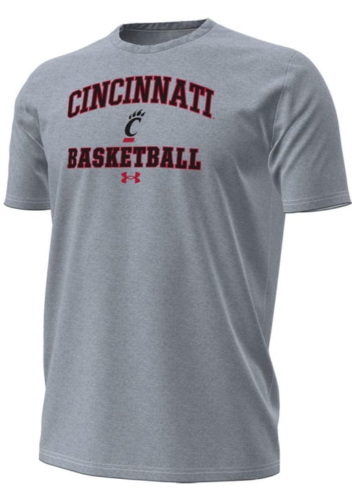 Display your team spirit with this remarkable Cincinnati Bearcats Under Armour Grey Basketball Performance Short Sleeve T Shirt! The Cincinnati Short Sleeve Tee showcases a screen print team graphic on center chest that truly sets it apart. Stand out from the crowd and proudly declare your allegiance to the Bearcats with this exceptional Grey Cincinnati T Shirt. Go Bearcats!!