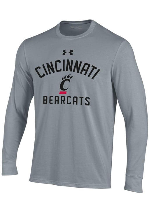 Show your Cincinnati Bearcats spirit in this Cincinnati Grey T Shirt! This Cincinnati Number One Paw Logo Long Sleeve T Shirt makes a great layer for cooler nights cheering on the Bearcats. Featuring a screen print of "Cincinnati" with Paw logo and team name beneath, this Cincinnati Bearcats Long Sleeve Tee is an essential addition for every fan. Go Bearcats!!