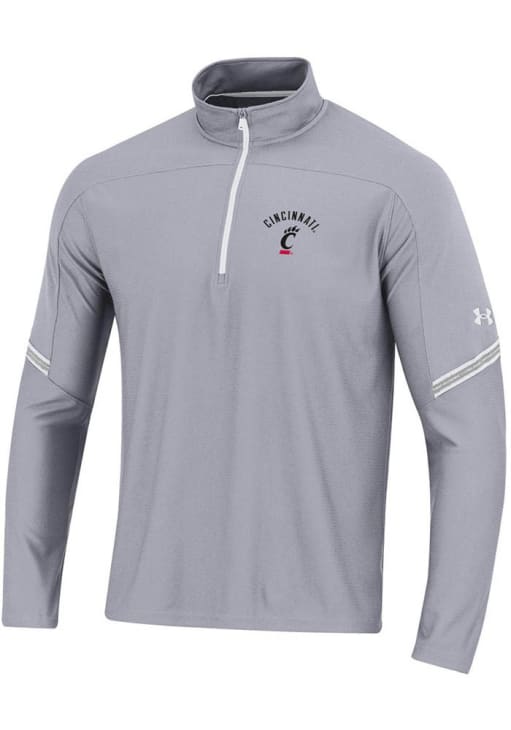 Embrace the warmth and showcase your Bearcats pride with our Cincinnati Bearcats Long Sleeve Qtr Zip Pullover. This Mens Grey Gameday Tech Mesh Long Sleeve Pullover offers a screen print team graphic on left chest for the perfect combination of comfort and style. Elevate your everyday look with this must-have Cincinnati Bearcats Long Sleeve Qtr Zip Pullover.