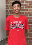 Display your team spirit with this remarkable Cincinnati Bearcats Red Arch Name Short Sleeve T Shirt! The Cincinnati Short Sleeve Tee showcases a screen print of Cincinnati arched over Bearcats on front chest that truly sets it apart. Stand out from the crowd and proudly declare your allegiance to the Bearcats with this exceptional Red Cincinnati T Shirt. Go Bearcats!!