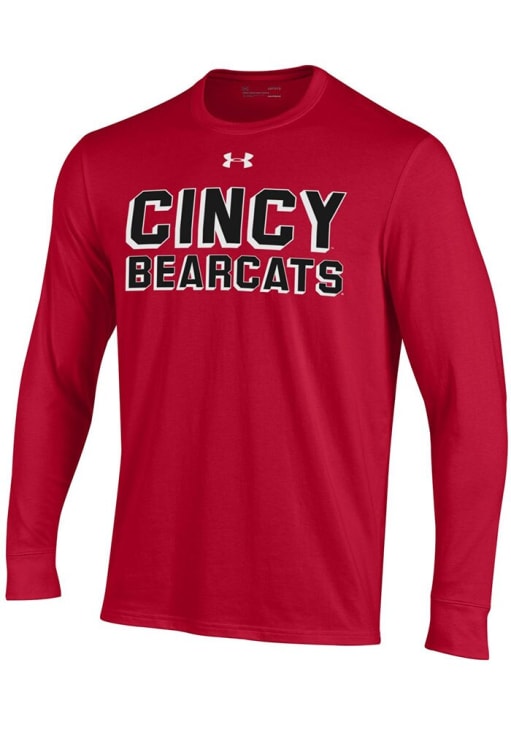 Show your Cincinnati Bearcats spirit in this Cincinnati Red T Shirt! This Cincinnati Flat Name Mascot Long Sleeve T Shirt makes a great layer for cooler nights cheering on the Bearcats. Featuring a screen print of "Cincy Bearcats" in block letters across chest, this Cincinnati Bearcats Long Sleeve Tee is an essential addition for every fan. Go Bearcats!!