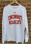 Show your Cincinnati Bearcats spirit in this Cincinnati White T Shirt! This Cincinnati Arch Name Long Sleeve T Shirt makes a great layer for cooler nights cheering on the Bearcats. Featuring a screen print of "Cincinnati Bearcats" on front chest, this Cincinnati Bearcats Long Sleeve Tee is an essential addition for every fan. Go Bearcats!!
