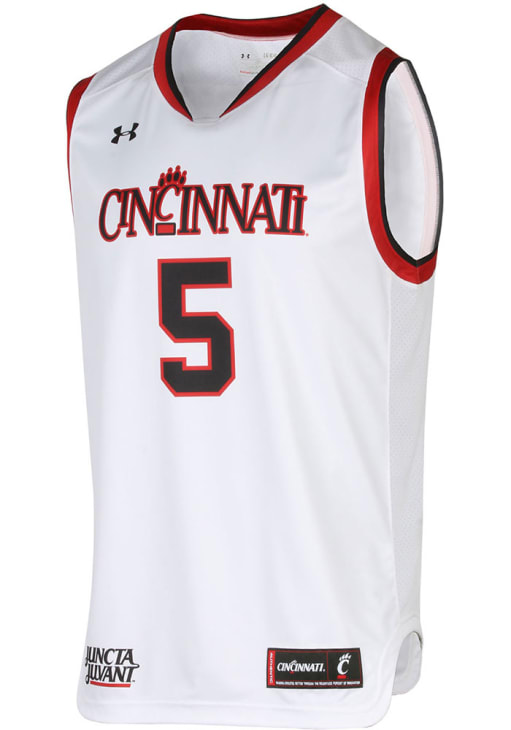 Stand out and showcase your unwavering Cincinnati pride with confidence in this striking Cincinnati Bearcats Mens White Contrast Replica Jersey! Make a statement on gameday with this eye-catching Cincinnati Bearcats Basketball Jersey, which features a combination sublimation and print application of team name and player number.