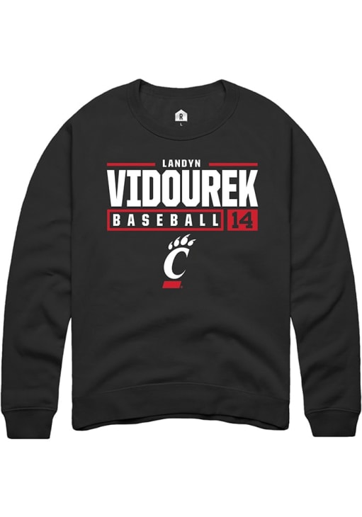 Landyn Vidourek Rally Mens Black Cincinnati Bearcats NIL Stacked Box Crew Sweatshirt
