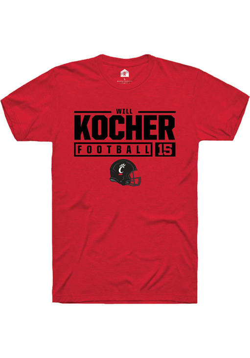 Will Kocher Red Cincinnati Bearcats NIL Stacked Box Short Sleeve T Shirt