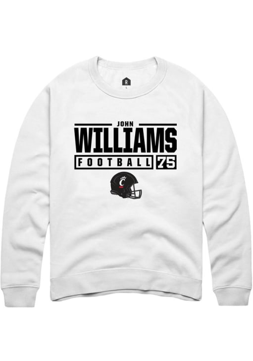 John Williams Rally Mens White Cincinnati Bearcats NIL Stacked Box Crew Sweatshirt