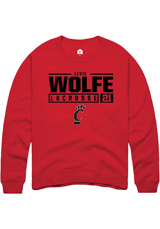 Lexie Wolfe Rally Mens Red Cincinnati Bearcats NIL Stacked Box Crew Sweatshirt