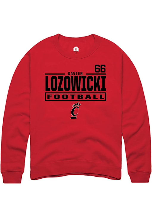 Support your Cincinnati Bearcats and favorite Xavier Lozowicki in this Cincinnati Bearcats Mens Red Football NIL Stacked Box Player Crew. This Crew Sweatshirt features a NIL graphic, and is sure to stand out in the stadium. Perfect to wear on game day or any day!