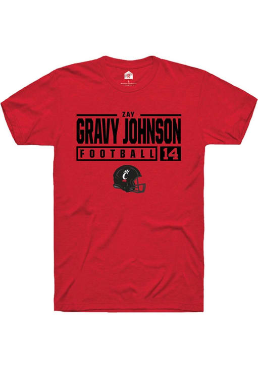 Zay Gravy Johnson Red Cincinnati Bearcats NIL Stacked Box Short Sleeve T Shirt