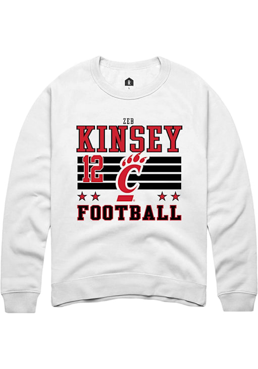 Support your Cincinnati Bearcats and favorite Zeb Kinsey in this Cincinnati Bearcats Mens White Football NIL Striped Player Crew. This Crew Sweatshirt features a NIL graphic, and is sure to stand out in the stadium. Perfect to wear on game day or any day!