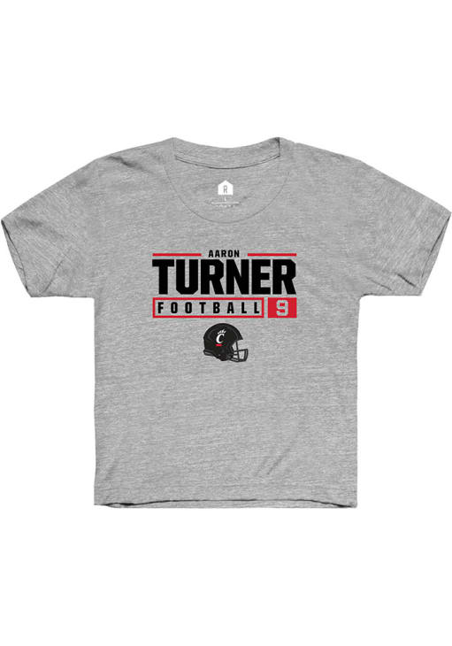 Aaron Turner Rally Youth Grey Cincinnati Bearcats NIL Stacked Box Short Sleeve T-Shirt