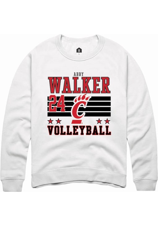 Abby Walker Rally Mens White Cincinnati Bearcats NIL Striped Crew Sweatshirt
