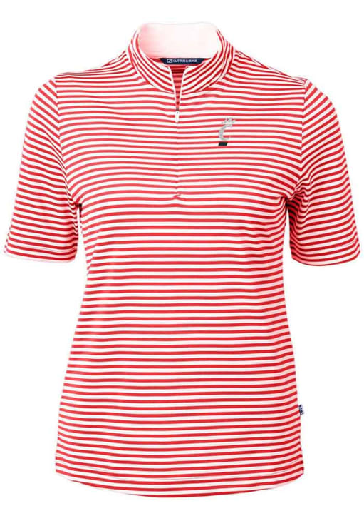 Womens Cincinnati Bearcats Red Cutter and Buck Virtue Eco Pique Stripe Short Sleeve Polo Shirt