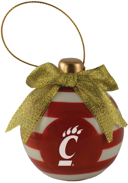 Decorate your Bearcats tree this holiday season with this Cincinnati Bearcats Ceramic Bulb Ornament. Add Cincinnati features to your holiday cheer. This Ornament features a circular ball with front team logo, team-color stripes and bow on top. Go Bearcats!!