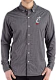 Mens Cincinnati Bearcats Black Cutter and Buck Gingham LS Woven Long Sleeve Dress Shirt