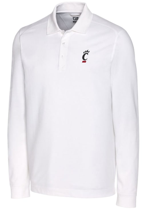 Make a bold statement in this Cincinnati Bearcats Cutter and Buck Mens White Advantage Pique Long Sleeve Long Sleeve Polo! This Polo features a high quality tri-blend pique that combines super soft cotton with DryTec polyester and spandex, making this Mens Long Sleeve Polo Shirt perfect for any Cincinnati fan who wants to display their spirit in any setting.
