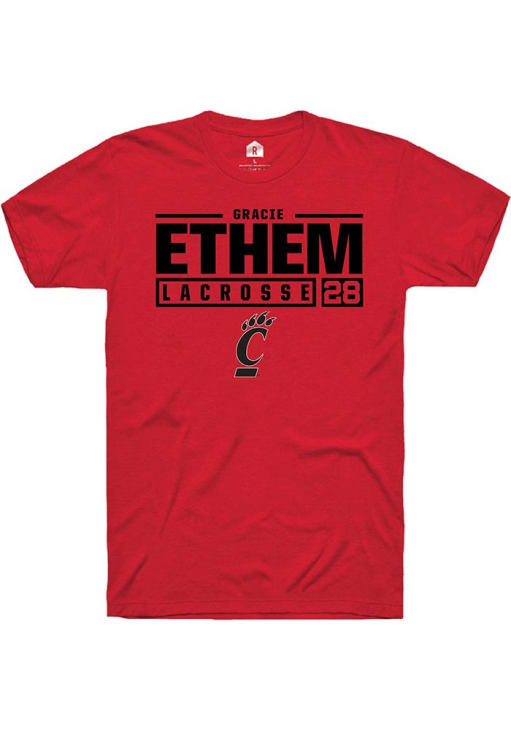 gracie ethem Red Cincinnati Bearcats NIL Stacked Box Short Sleeve T Shirt